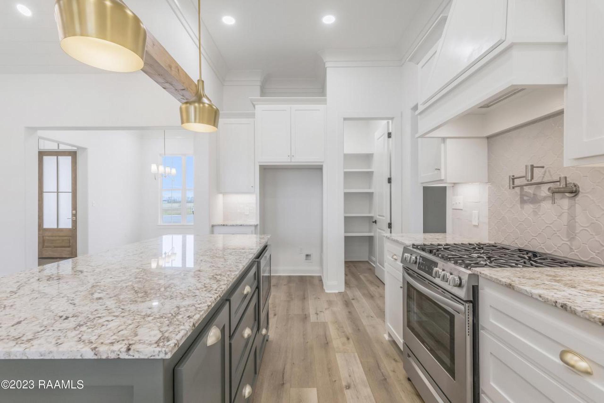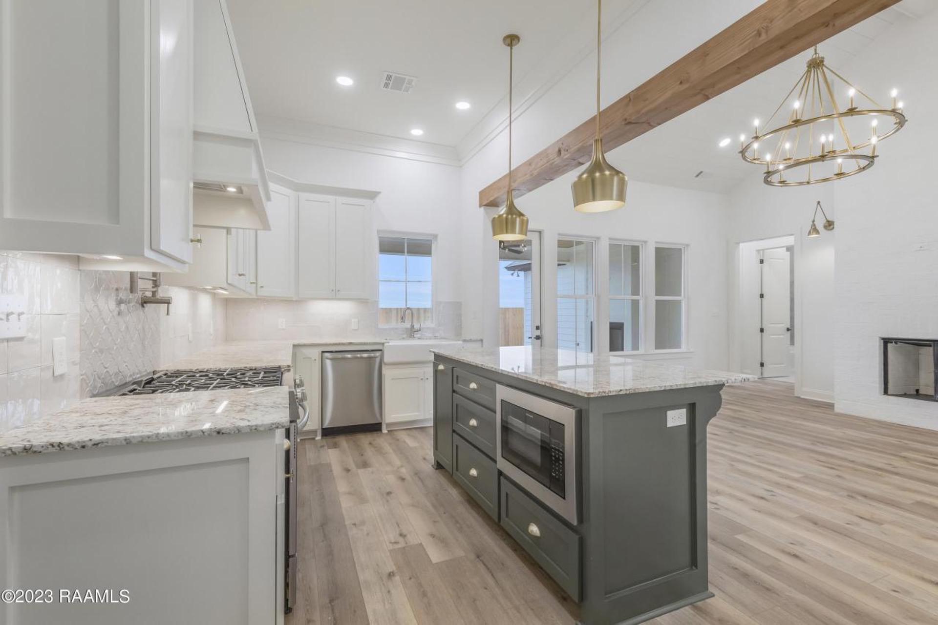 Equipped with a massive center island, ample seating, full cabinetry, and high-end appliances—this kitchen is as practical as it is inviting.